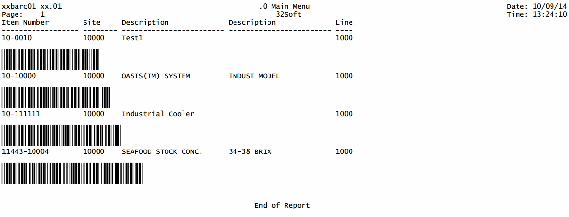 ¦    Description: LBOX Barcode                          Lines / Page: 30       ¦